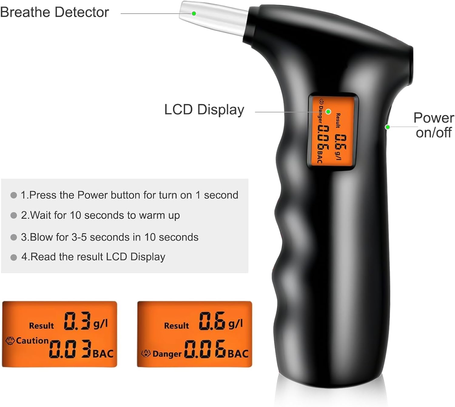Compatto e portatile: questo strumento professionale per alcoolometro occupa poco spazio e può essere facilmente trasportato in borsa o in tasca. Si prega di attendere almeno 3 minuti prima del test successivo., 3., Il risultato del test è superiore allo 0,05% BAC o 0,5 g/l, il tester emette un allarme., 4., Questo misuratore ha un intervallo di misurazione dell'alcol di 0,00-0,19% BAC (0,0-1,9 g/l). Un metodo semplice per analizzare la concentrazione nel sangue in qualsiasi momento e in qualsiasi luogo. Etilometro Professionale Con Bocchini Alcol Test Portatile Etilometro Portatile Professionale - Certificato, 20 Bocchini, Display LCD, Per Casa E Feste Etilometro Digitale Bocchini Ideale Per Sicurezza Personale E Familiare RUTIDA Tester di alcool, polizeigenau con 12 bocchini, tester di alcool professionale, tester... I nostri 10 Migliori Etilometro Professionale Polizia in Italia RESPONSABILE DELLA SICUREZZA: Visualizzazione rapida e accurata del livello di alcol nel sangue. Non risparmieremo alcuno sforzo per capirlo. 1., Il risultato del test sarà accurato 20 minuti dopo aver bevuto., 2., Prova subito dopo aver bevuto può mostrare solo la forza alcolica istantanea in bocca. Risposta rapida e salutare: design soffiante con cinque bocchini per più utenti; Il tester dell'alcool può spegnere automaticamente, risposta rapida e recupero, questo rilevatore di bugie ha una funzione di allarme, il cicalino si attiva automaticamente quando il contenuto viene superato. Nota sull'ordine: diamo sempre grande importanza all'esperienza di acquisto dei clienti. Vaestarpro Etilometro elettronico e 5 bocchini, display digitale LCD, professionale portatile sensore a semiconduttore Tester di alcool con allarme... Possono essere puliti e riciclati, ciò che è buono per l'igiene.