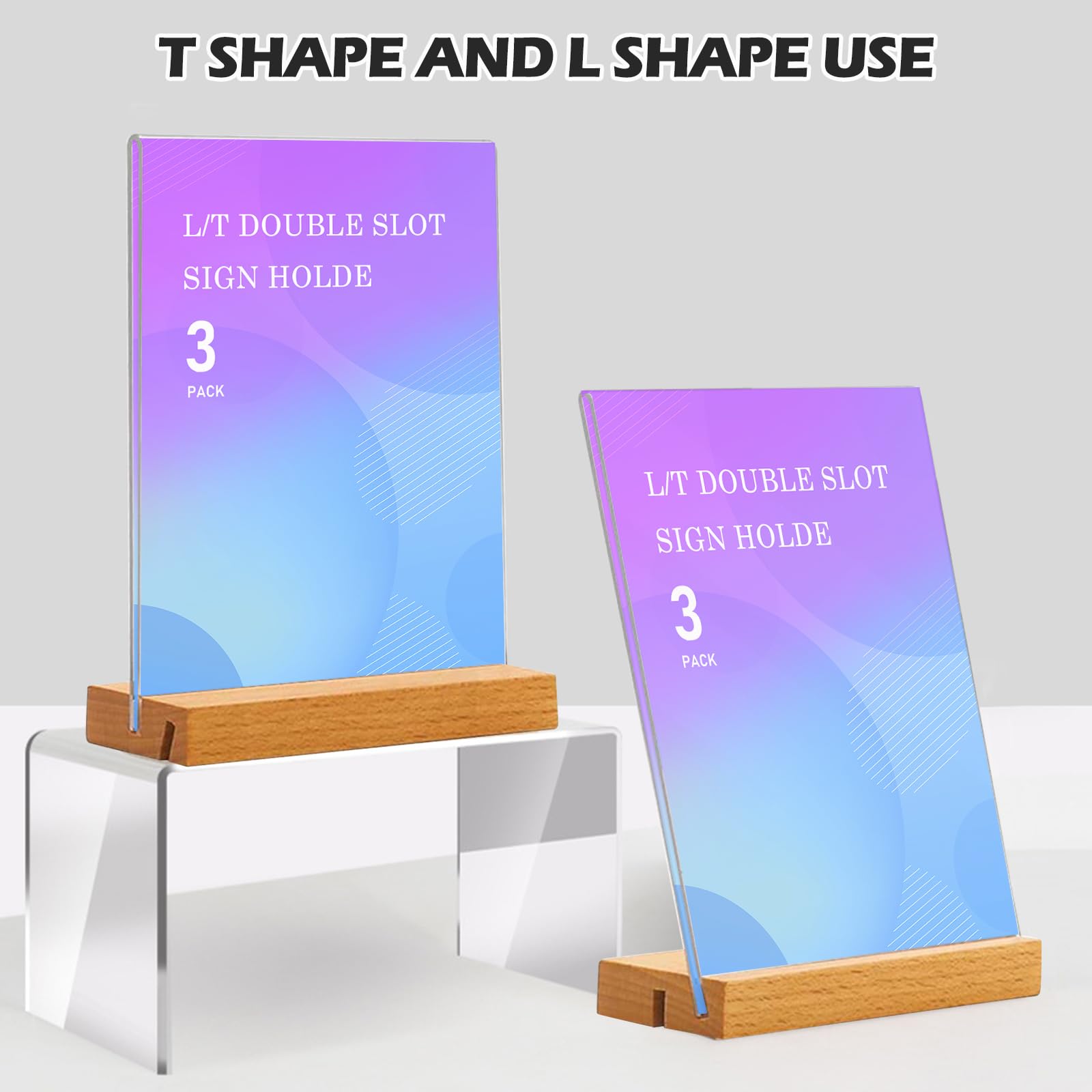 Yoosso Espositore Da Tavolo, Formato A5, 4 Pezzi, A Forma Di L, Formato A5, In Acrilico, Con Base In Legno, Per Menu, Bar, Ristorante, Negozio, Matrimonio, 21 X 14,3 Cm