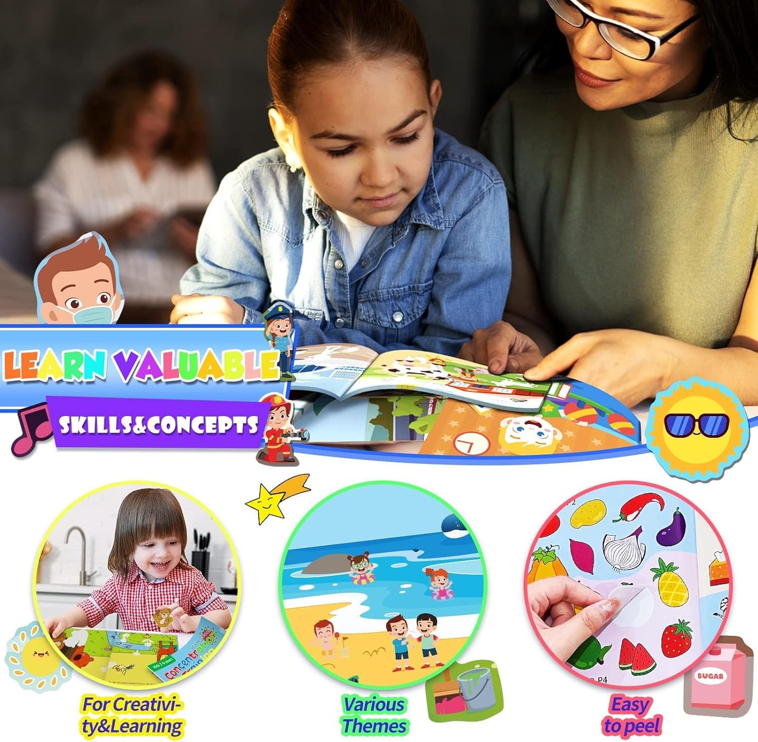 10 Pezzi Riutilizzabili Adesivi Libro Per 2 3 4 5 6 Anni