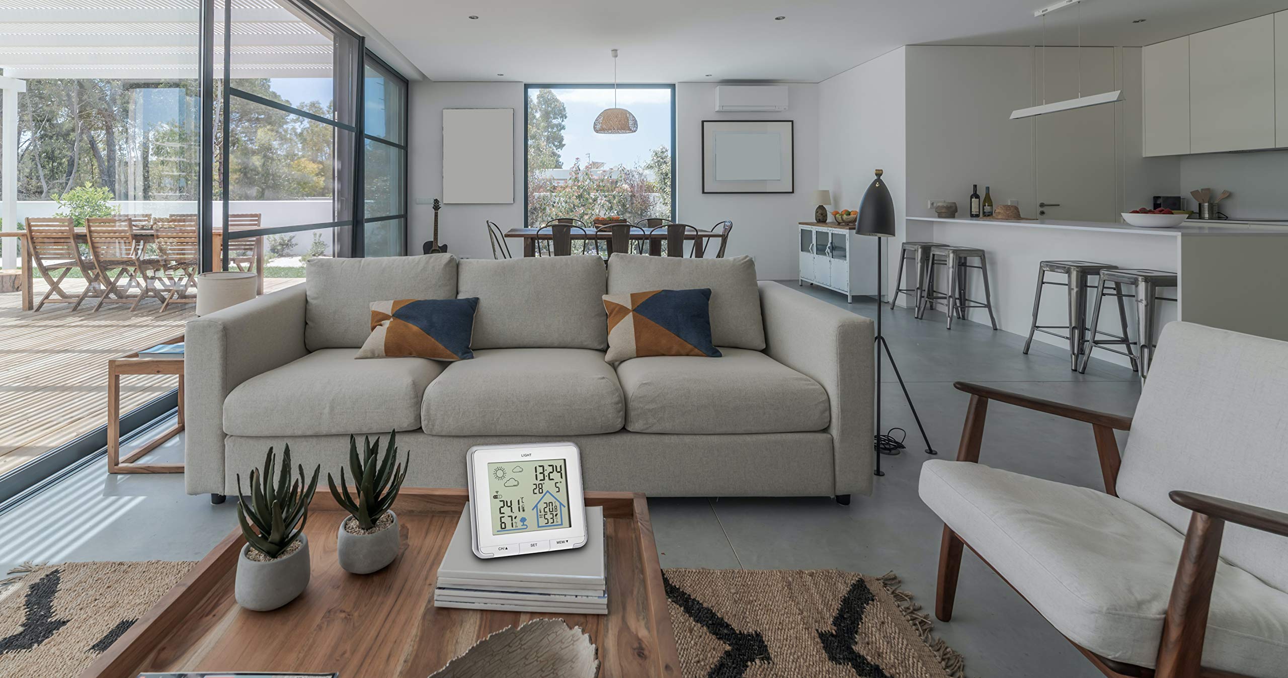 Previsioni Del Tempo 24h TFA Dostmann Season 35.1150.01 - Stazione Meteo Radio Con Sensore Esterno, Fasi Lunari, Orologio Radiocontrollato, Per Interni Ed Esterni (Nero Stazione Meteo Display Colori Orologio Radio Dostmann 3048 twin stazione meteorologica radio. Cerca, compra, vendi nuovo e us Contenuto della fornitura: la stazione meteorologica digitale wireless, un trasmettitore termico, un adattatore di rete e le istruzioni per l'uso in 6 lingue sono inclusi nella fornitura, le batterie (3 batterie AAA + 2 batterie AA) devono essere ordinate separatamente Funzione di sveglia con allarme Sensore esterno: la fornitura comprende un trasmettitore esterno senza fili per il controllo della temperatura; si prega di posizionare sempre il trasmettitore esterno al riparo dalle precipitazioni, il display mostra un'indicazione permanente dei valori massimi e minimi, estendibile fino a un massimo di 10 minuti. Stazione meteorologica wireless con sensore esterno: la stazione meteorologica domestica offre un display chiaro con tutte le informazioni meteo più importanti a colpo d'occhio, le previsioni del tempo con simboli meteorologici (soleggiato, parzialmente nuvoloso, nuvoloso, pioggia, temporale, neve) per 12-24 ore forniscono una tendenza meteo Nome Completo: TFA Dostmann stazione meteo radiocontrollata Life, 35.1153.02, digitale, con previsioni del tempo, temperatura e umidità interna e esterna, con sensore esterno, bianca Ean: 4009816033871 Marca: TFA Dostmann Asin: B07WTPXR8K Prezzo: Stabile (Vedi Andamento) Recensioni: Leggi (1836) Lascia una Opinione Posizione: 3° Fascia Economica nell'articolo : Le Migliori Stazioni Meteo... IN STOCK: TFA Dostmann Stazione meteo con sensore esterno SUN2 digitale, 35.1174, per temperatura interna ed esterna, ampio display a colori, con clima...